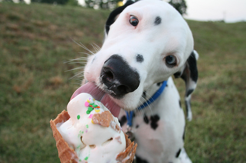 Here is Chef Strafford’s dog, Waffles, enjoying one of her ice cream treats.